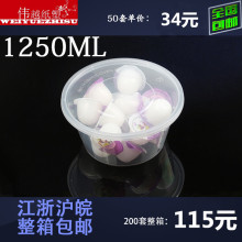 1000ml圆碗快餐盒 打包盒/汤碗 一次性塑料透明圆碗 50套带盖