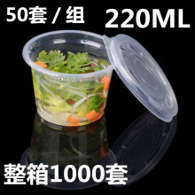 300ml一次性快餐盒圆形透明汤碗塑料打包盒甜品小菜碗外卖盒带盖