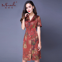 真丝连衣裙2017夏季新品女装刺绣复古气质V领桑蚕丝大码短袖女裙