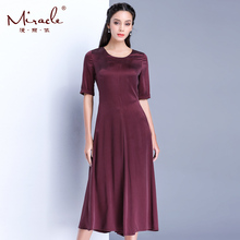 2017新款女装真丝连衣裙夏装新款中袖大码桑蚕丝中长款裙子春装女