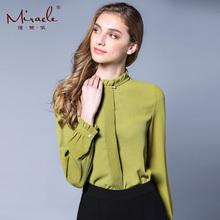 2017春装新款韩版大码修身职业装女士立领白色加绒衬衫女长袖衬衣