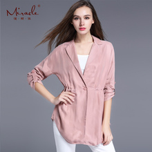 2016新款V领真丝修身上衣夏季大码女装桑蚕丝衬衫七分袖夏装衬衣