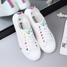 韩版爱心帆布鞋女学生平底小白鞋系带运动鞋平跟板鞋跑步单鞋女鞋