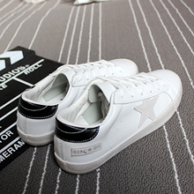 环球韩版系带小白鞋女白色板鞋学生休闲女鞋皮面平跟帆布鞋平底鞋