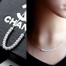 韩国项链细小珍珠吊坠短款锁骨毛衣链女秋冬配装饰品长款简约百搭