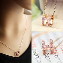 日韩时尚气质H字母项链女镀镶满钻锁骨毛衣链 长短秋冬百搭首饰品