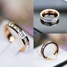 日韩玫瑰金钛钢镶排钻戒指女 食指环潮人学生简约防过敏不褪保色