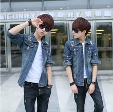 2016春秋季新款牛仔外套男士修身百搭牛仔夹克学生韩版破洞上衣潮