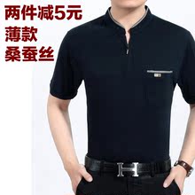 大码爸爸桑蚕丝短袖上衣 中老年男装短袖T恤男中年宽松圆领汗衫薄
