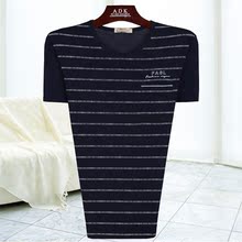 中年男士短袖条纹T恤衫中老年男式体恤衫半截袖男夏季宽松爸爸装