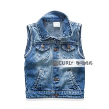 外贸童装2017春夏新款男童纯棉马甲中大童牛仔外套宝宝牛仔马夹潮