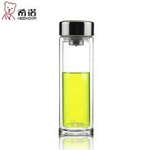 新品希诺双层玻璃杯水杯 带盖透明办公室泡茶杯 创意过滤隔热杯子
