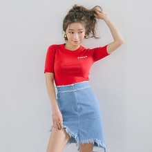 stylenanda韩国夏季新款不规则切边牛仔裙半身裙韩版流苏毛边短裙