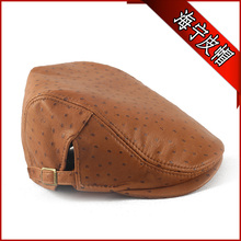 真皮帽子男式女士贝雷帽春秋款鸭舌帽韩版潮驼鸟皮户外包邮