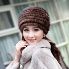 新款海宁水貂毛编织帽子户外秋冬季保老人帽皮草帽子裘皮中老年女