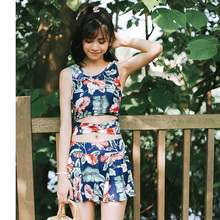 candy-原创温泉保守小胸聚拢裙式比基尼遮肚显瘦学生游泳衣女