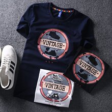 欧美街头潮牌日系复古风印花圆领汗衫青少年半截袖大码男短袖T恤