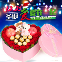 平安夜圣诞节红粉香槟玫瑰鲜花礼盒北京鲜花速递长沙同城花店送花