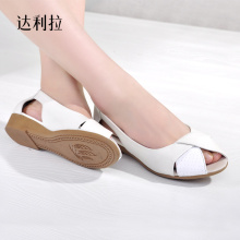 达利拉夏款真皮舒适妈妈鞋凉鞋平底鱼嘴凉鞋软底牛皮中老年女鞋子