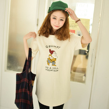 时尚权威韩国2016夏装新款小矮人韩版纯棉短袖长款印花t恤女装潮