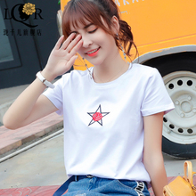 韩版夏装2017新款t恤女短袖百搭韩范修身上衣女半袖印花体恤衫女