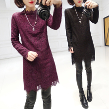 霍莉斯罗秋冬季蕾丝衫中长款大码长袖女士小衫上衣打底衫连衣裙