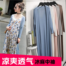 2017夏装新款中长款中袖透气亚麻披肩空调衫防晒衣薄款针织女开衫