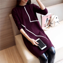 简约线条孕妇冬装毛衣孕妇装韩版大码宽松毛衣裙中长款秋冬针织衫