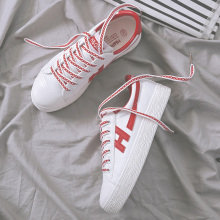 环球百搭板鞋皮面休闲鞋平底学生小白鞋子女鞋系带韩版运动鞋春季