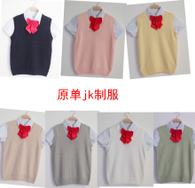 原缩JK制服男女装学生班服针织衫套头V领毛衣制服cos纯棉