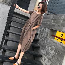 宽松显瘦连衣裙女 中长款棉麻套头短袖2017年夏季时尚简约长