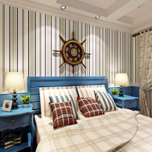 普纳帆船墙纸 条纹儿童房男孩卧室ab版地中海航海壁纸 环保无纺布