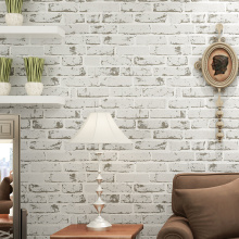普纳 地中海风格白色砖块墙纸 复古仿真砖纹壁纸 餐厅客厅背景墙