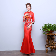 新娘敬酒服春夏2017新款红色长款鱼尾中式敬酒礼服结婚复古旗袍女