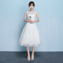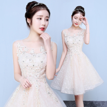 晚礼服2017新款宴会短款修身伴娘服姐妹裙香槟色显瘦主持人小礼服
