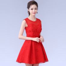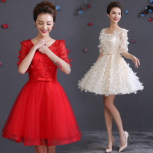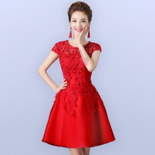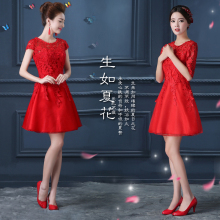 敬酒服新娘新款2017春夏季圆领红色结婚礼服伴娘服短款宴会连衣裙