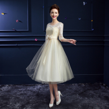 伴娘服姐妹裙2017新款短款中袖伴娘礼服连衣裙中长款宴会晚礼服女