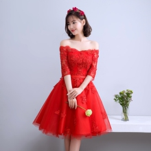 晚礼服2017新款宴会连衣裙韩版红色大码修身新娘短款结婚敬酒服女