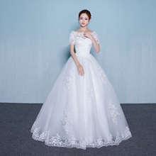 婚纱礼服新娘2017新款韩版蕾丝短袖齐地大码修身一字肩公主结婚女
