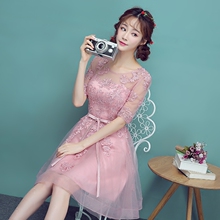 粉色订婚2017新款宴会晚礼服伴娘服短款回门连衣裙女新娘敬酒服夏