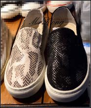 韩国代购 男女款平底休闲鞋 蛇纹PU加厚 套脚 懒人情侣板鞋apied