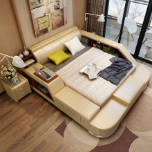 栢菲莱斯 现代时尚 真皮床 储物 软体床双人床 1.8米婚床榻榻米床