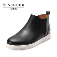 莱尔斯丹 秋冬男鞋男士时尚休闲套脚短靴皮靴6TM70413