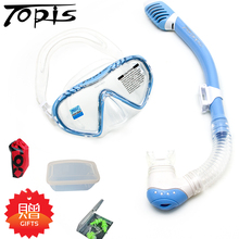 TOPIS 清晰潜水镜全干式呼吸管硅胶面镜套装儿童浮潜三宝
