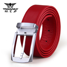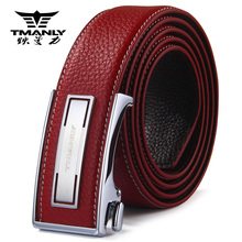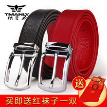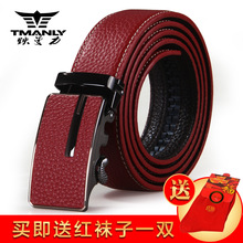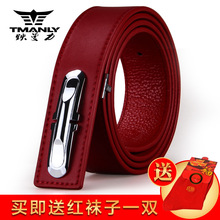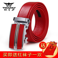 铁曼力本命年红腰带男士真皮自动扣纯牛皮 结婚鸡年礼品红色皮带