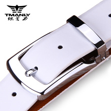白色皮带男真皮针扣 韩版潮流纯牛皮休闲百搭 少年青年腰带铁曼力