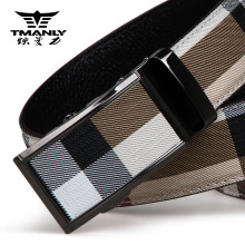 皮带男真皮自动扣 纯牛皮休闲百搭头层牛皮铁曼力韩版潮白线腰带