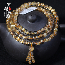 润格天然钛晶佛珠手链 金发晶多圈手链 发晶3圈4圈手串配送证书