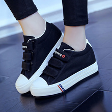 春新款韩版内增高厚底帆布鞋女式小白鞋魔术贴懒人鞋女装学生鞋子