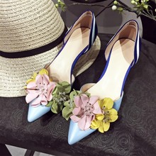 韩版时尚绣花朵女鞋2017春夏新款简约细跟中跟尖头浅口真皮单鞋女